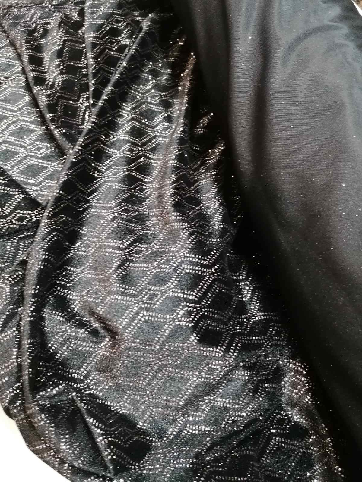 Ζέρσευ ελαστικό ύφασμα με λεπτομειριες ΑΣΗΜΙ κατάλληλο για φορέματα, φούστες, μπλούζες, κορμάκια, για στολές μπαλέτου ,χειροποίητες καταστευές φιογκάκια και κορδέλες.
