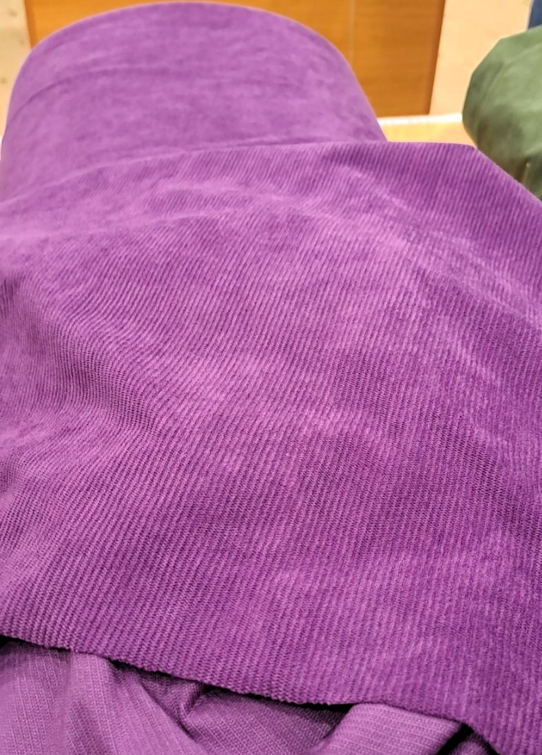 Ύφασμα Κοτλέ χιλιόριγο από ποιοτικές ίνες. Πρόκειται για σταθερό, ελαφρύ ύφασμα με μαλακό πέλος και πυκνή, μαλακή ύφανση με λεπτές ανάγλυφες ρίγες. Έχει απαλή βελούδινη υφή, ωραίο πέσιμο, χαρίζει στο σώμα ευκινησία, άνεση και είναι ιδανικό για τα χειμερινά και ανοιξιάτικες δημιουργίες σας